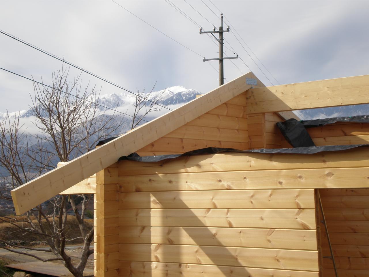 Dec 2007/Jan 2008. / Our first pair of rafters are up, but...