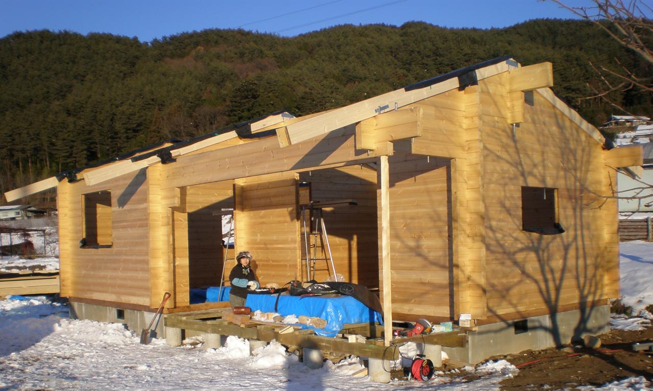 This is how we left things at the end of day on Sunday. Not too much visible progress, but we're happy to have the problematic rafters (those requiring spacers) up and fixed in place.