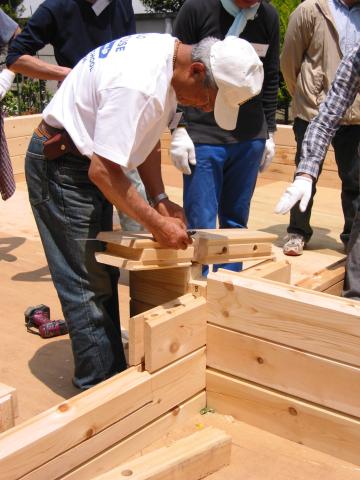 Tanaka-san measuring up the logs for the fix.
